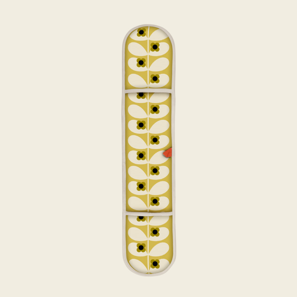 Dobbel gryteklut i mønsteret Wild Rose Stem fra Orla Kiely. Smart hempe for oppheng når den ikke er i bruk. Den brukes med to hender.
