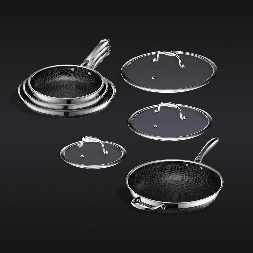 HexClad har gjenoppfunnet stekepannen og skapt noe helt utrolig flott med sin patenterte teknologi. Dette er stekepannen som kombinerer holdbarheten til støpejern, ytelsene til stål og fordelen med non-stick. Med Hexclad kan du tilberede alt fra den mest delikate fisken til en saftig og perfekt brunet biff uten å bekymre deg for hvilken stekepanne du skal benytte, og produktene er PFOA-frie