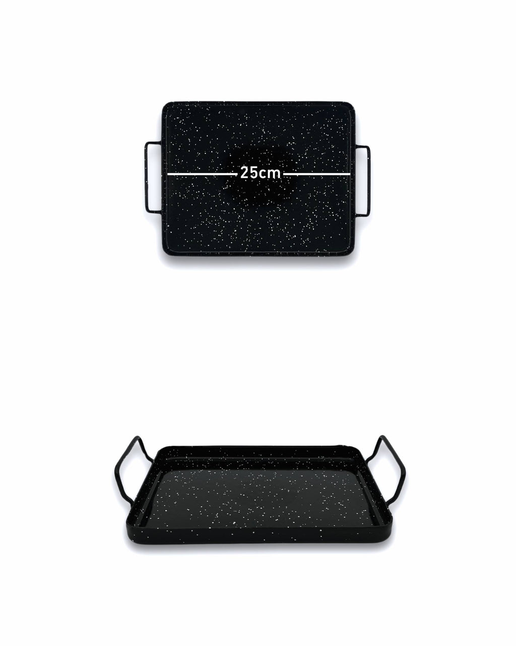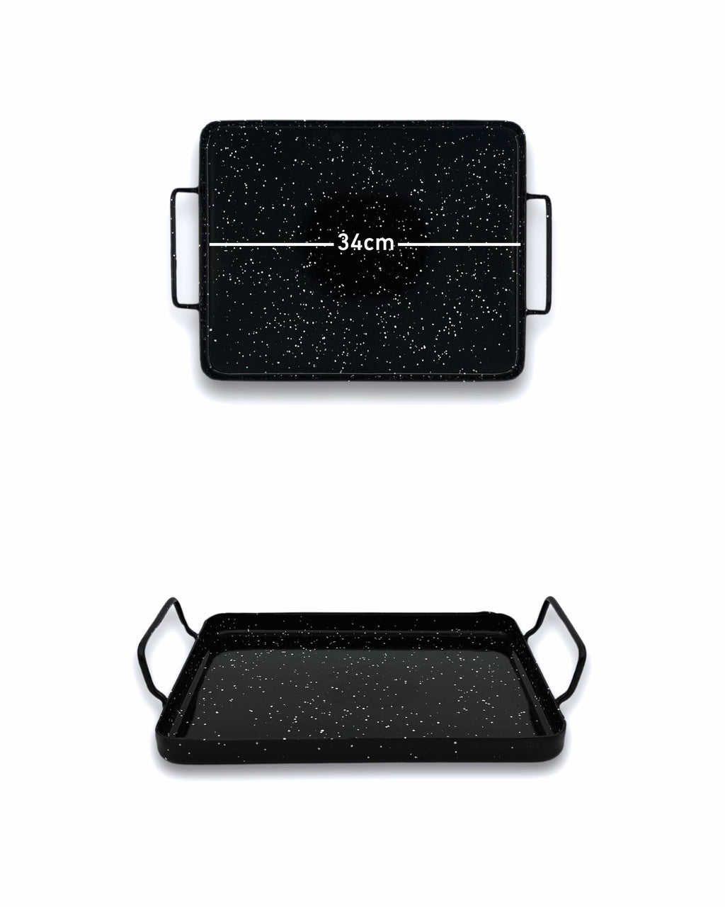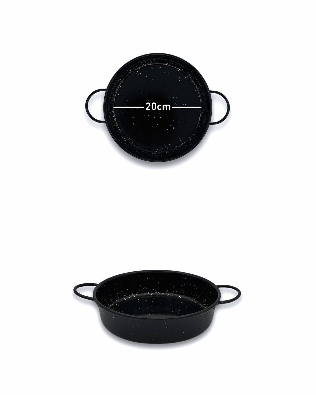- De emaljerte pannene er laget av karbonstål som leder varme veldig hurtig og pannene blir derfor raskt varme. Bruk lav/middels temperatur når du begynner å steke for å unngå at det setter seg fast eller svir seg. Bruk olje eller smør ved steking og smør pannen godt ved bruk i stekeovn.