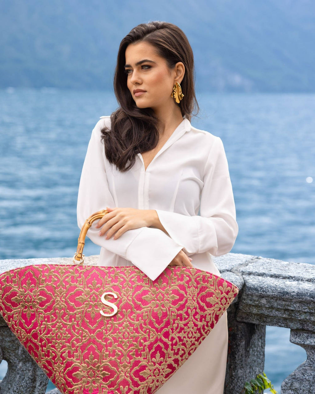 Nydelige veske laget i luksuriøst stoff. Alle veskene i denne serien er håndlaget i Hellas.