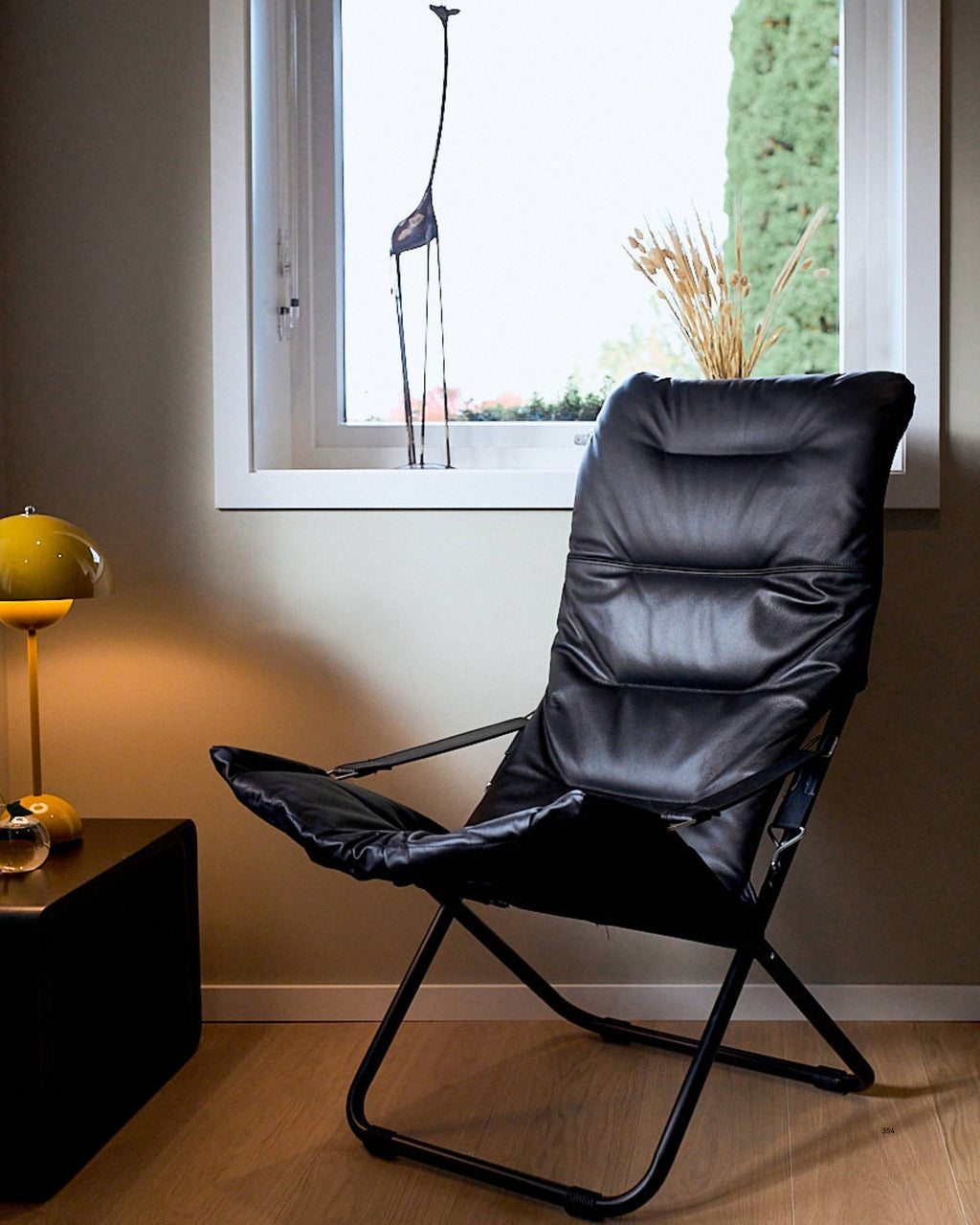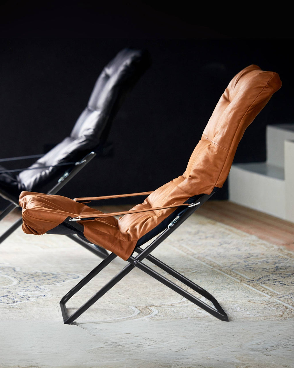 Italienske FIAM produserer også Fiesta i skinn med pulverlakkert stålramme i svart. Klassikeren blir altså med innendørs. Og bøffelskinnet får over tid en nydelig patina. Kvaliteten er som de øvrige FIAM produktene - veldig god!