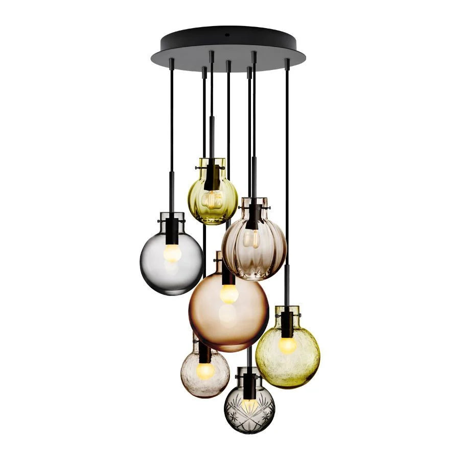 Fjellglød, inspirert av fjellets gnistrende fargespill om høsten. Komponert av interiørstylist Renate Lorentzen. Krystallkulene er munnblåste og mønstrene er diamantslipt for hånd etter 250 år gamle tradisjoner på Hadeland Glassverk.