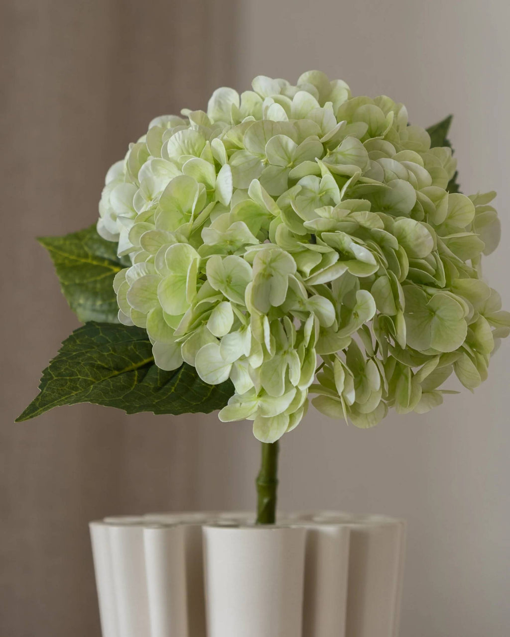 Denne naturtro store hortensiablomsten har et tidløst og elegant uttrykk som gjør seg like godt alene som i kombinasjon med andre blomster for å skape en unik bukett. Den tilfører et dristig, men samtidig grasiøst preg til enhver dekorasjon. Kjøp flere for å danne en nydelig iøyenfallene bukett, enten ensfarget eller ved å kombinere flere av fargene.