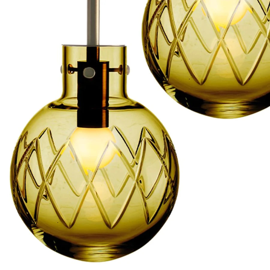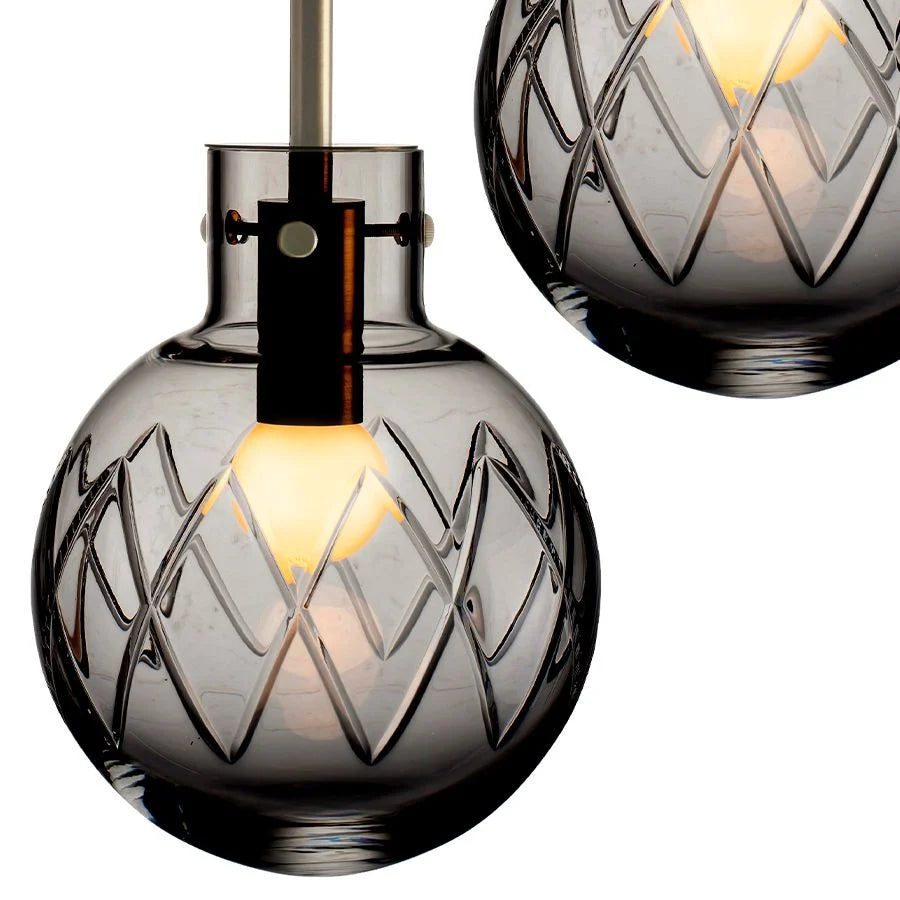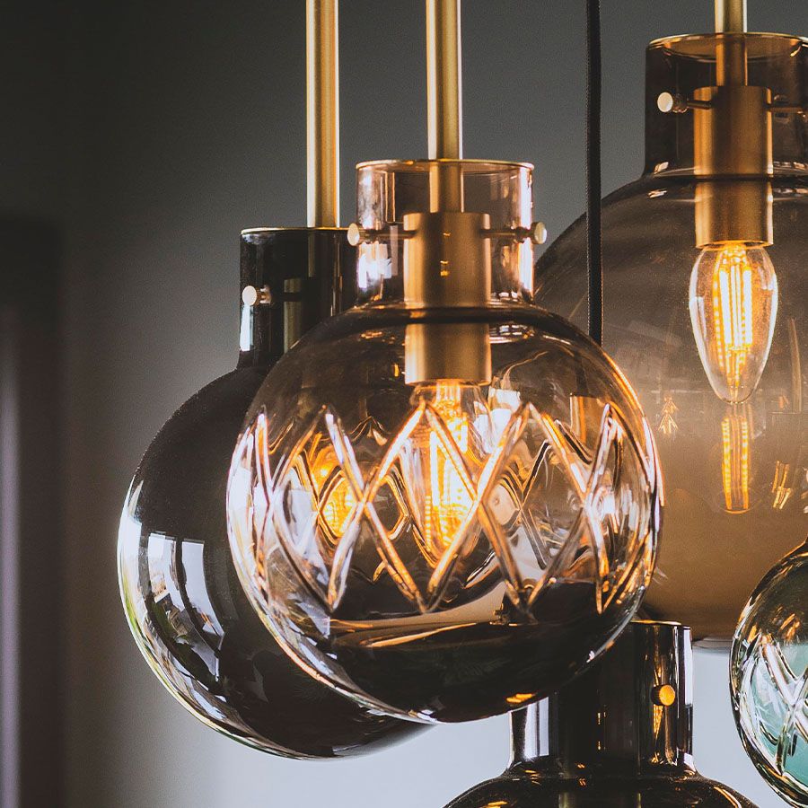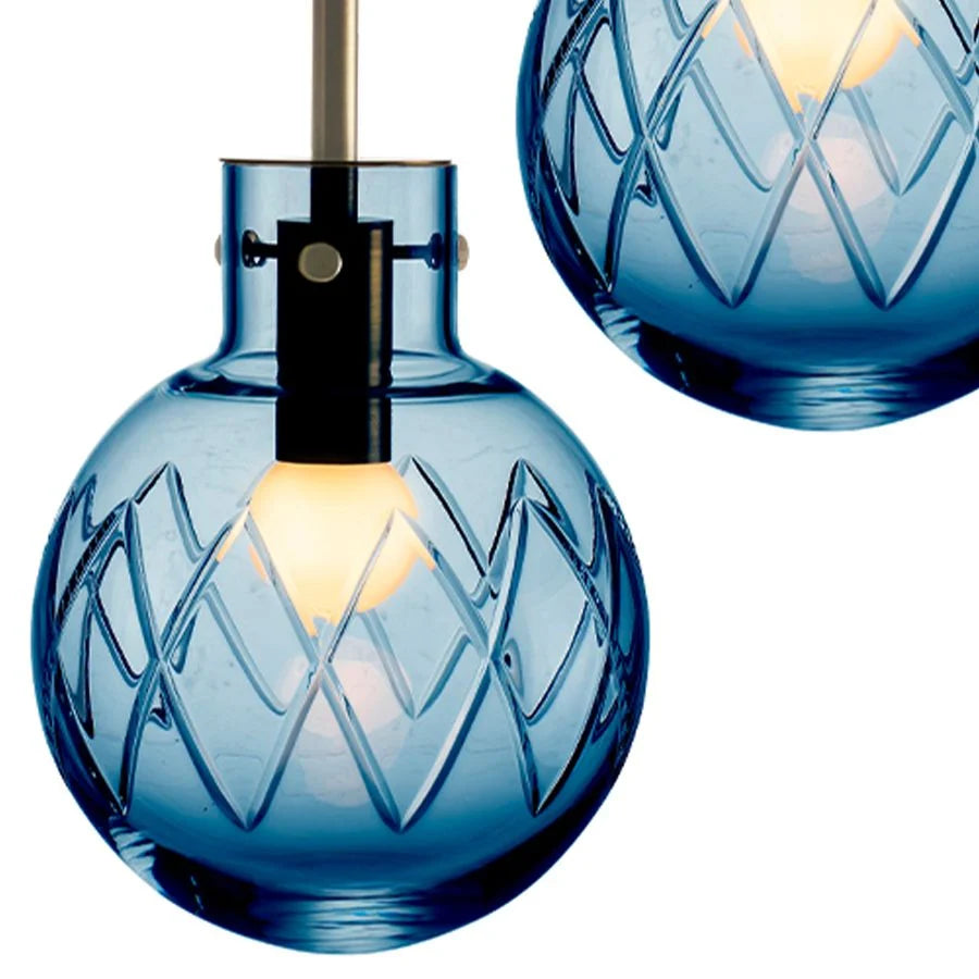 Lampen er like imponerende alene som når den grupperes i en klynge. Hver eneste krystallkule blir munnblåst og nøye håndslipet på Hadeland Glassverk, med over 10 dyktige håndverkere som legger sitt personlige preg på hver lampe før den sendes hjem til deg.