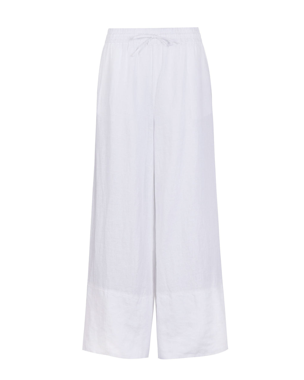 Lou wide pants er laget i 100% myk lin og kombinerer komfort med et elegant uttrykk. Buksen har strikk i livet, rette ben med vidde, og lommer både foran og bak. En tidløs modell som kan styles med skjorter og t-skjorter i lin for et komplett sommerantrekk. Normal i størrelsen.