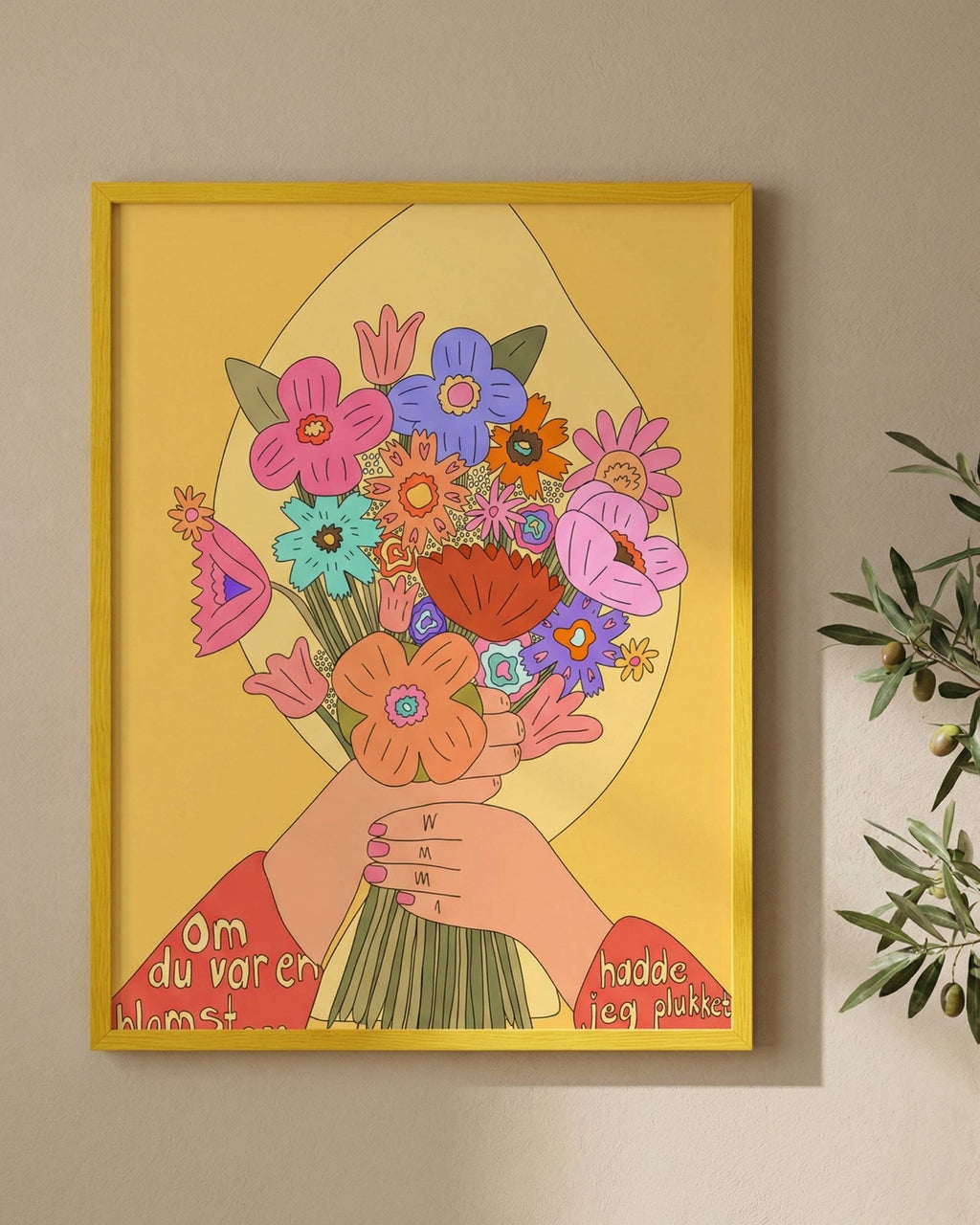 Om du var en blomst er et sjarmerende og humoristisk print som passer perfekt til deg som liker interiør med personlighet. Med et varmt uttrykk og et budskap som både er søtt, morsomt og litt frekt på den fine måten, blir dette fort en favoritt på veggen – enten på kjøkkenet, i gangen, på soverommet eller som en del av en fargerik bildevegg.