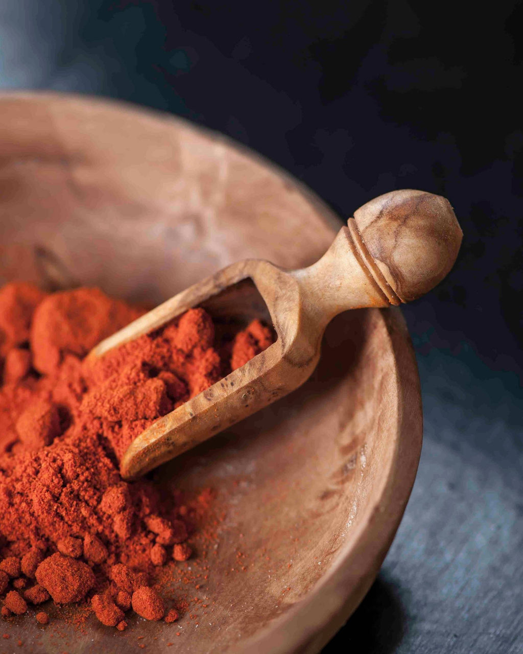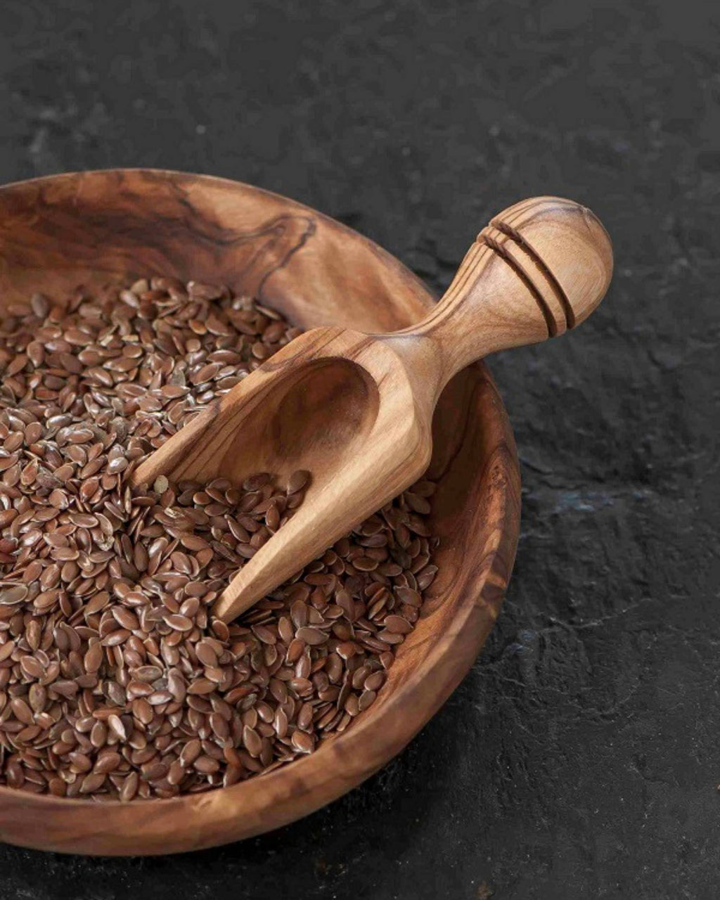 Skuffen er håndlaget i bærekraftig oliventre og kan brukes til f.eks krydder, mel, sukker, kaffe, osv.