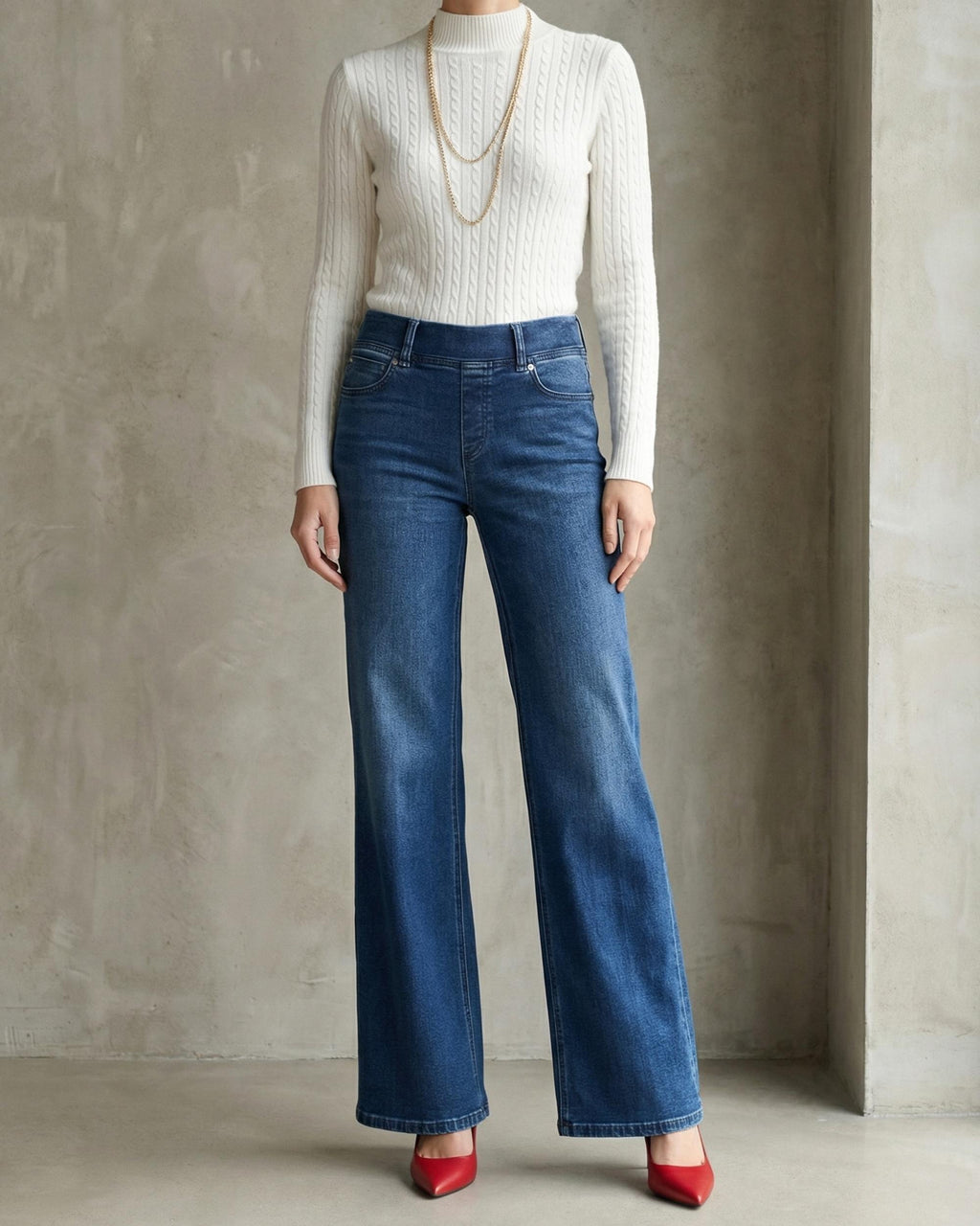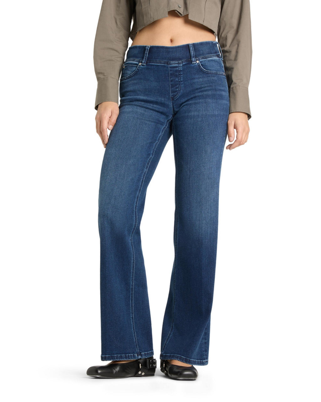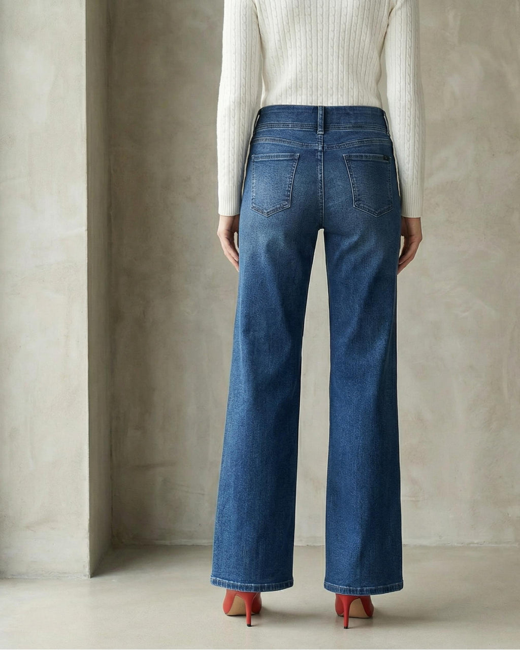 Tess Jogg er en klassisk, komfortabel og tidløs jeans fra Cambio. Den har strikk i livet. Superstretch med vide ben i full benlengde. Små firkantede passepoilerte lommer foran og emblem på høyre baklomme.